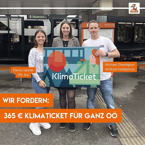 Wir fordern, dass in den Grundpreis von 365€ auch die Kernzonen Linz, Steyr und Wels aufgenommen werden. Zusätzlich muss es für uns Studierende eine Ermäßigung geben.