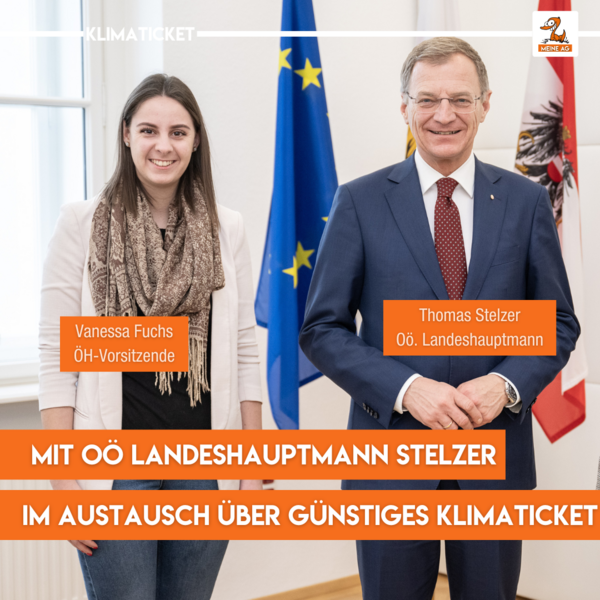 Wir als Aktionsgemeinschaft setzen uns deshalb dafür ein, dass das KlimaTicket inkl. der Kernzonen Linz, Wels und Steyr günstiger wird und es speziell auch eine Vergünstigung für alle Studierende gibt! Aus diesem Grund haben wir uns bei oö. Verkehrslandesrat Steinkellner, bei der Jugendstaatssekretärin Claudia Plakolm und zuletzt auch bei oö. Landeshauptmann Thomas Stelzer für ein günstiges KlimaTicket eingesetzt.